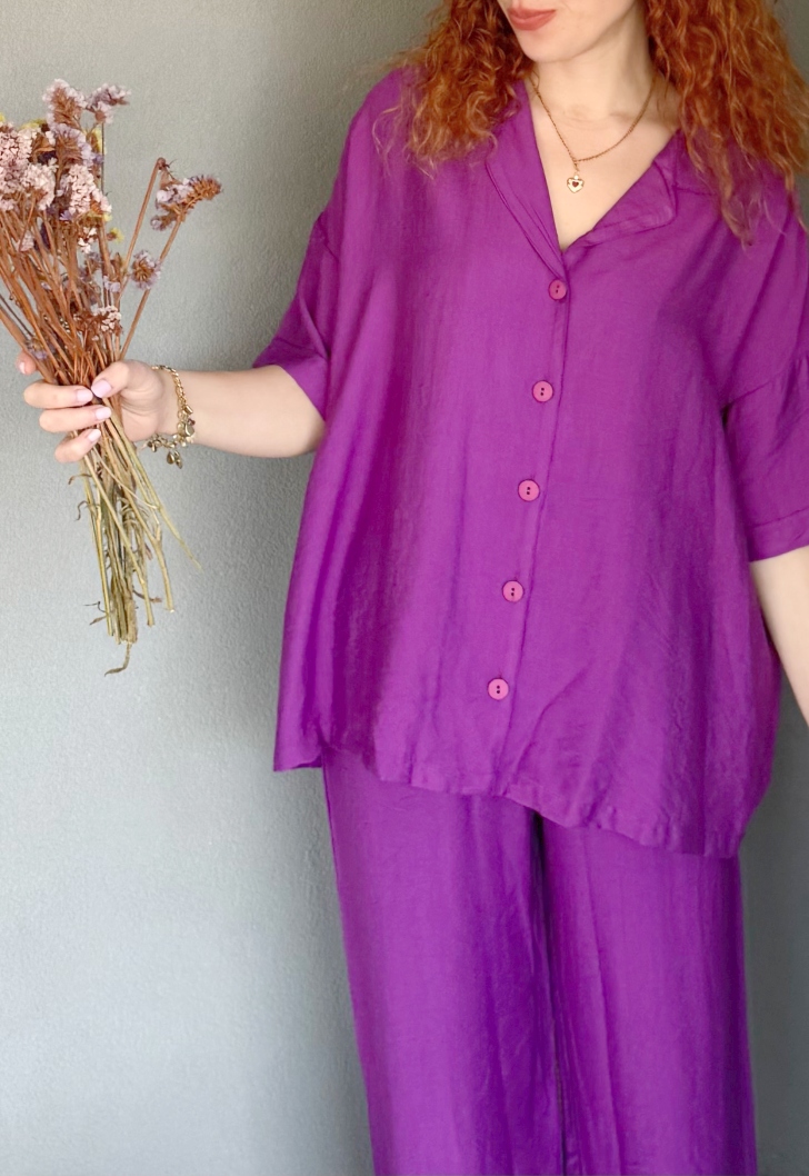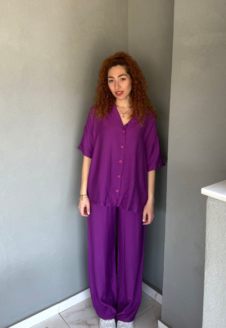Lorena Σετ Παντελόνι και Πουκάμισο – Μοβ